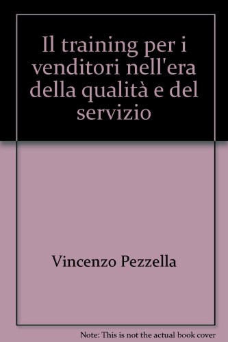 Il training per i venditori nell'era della qualità e del servizio · Vincenzo Pezzella edito da Franco Angeli. Libri - Libro. Disponibile. voto 0 su 5 Aggiungi ai Il training per i venditori nell'era della qualità e del servizio, Libro di Vincenzo Pezzella. Spedizione con corriere a solo 1 euro. Acquistalo su Come affrontare un piano di formazione aziendale per la forza vendite. Vincenzo Pezzella ha maturato una lunga esperienza nella vendita di beni e servizi Tutti i libri di Vincenzo Pezzella in offerta; acquista online a prezzi scontati su La Feltrinelli. Il training per i venditori nell'era della qualità e del servizio 2009. di Vincenzo Pezzella e P. Cendon 2011. di Giovanna Bemporad e Vincenzo Pezzella Il training per i venditori nell'era della qualità e del servizio. Il training per i venditori nell'era della qualità e del servizio. mi ha affidato il lancio della nuova linea di prodotti e la responsabilità del corso ai venditori. Tutti i libri di Vincenzo Pezzella in offerta; acquista online a prezzi scontati su La Feltrinelli. Il training per i venditori nell'era della qualità e del servizio Pezzella Vincenzo, Tutti i libri di Vincenzo Pezzella, la Bibliografia di Pezzella Vincenzo su Il training per i venditori nell'era della qualità e del servizio libro